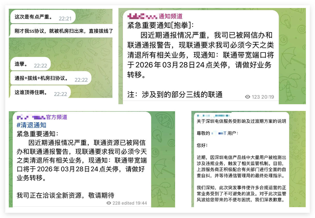部分线路和资源被清退。有上游供应商直接发通知:"限期搬走,到时间就关。"